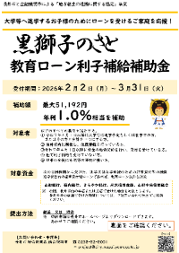 【3/31締切】 令和7年度 黒獅子のさと教育ローン利子補給補助金について