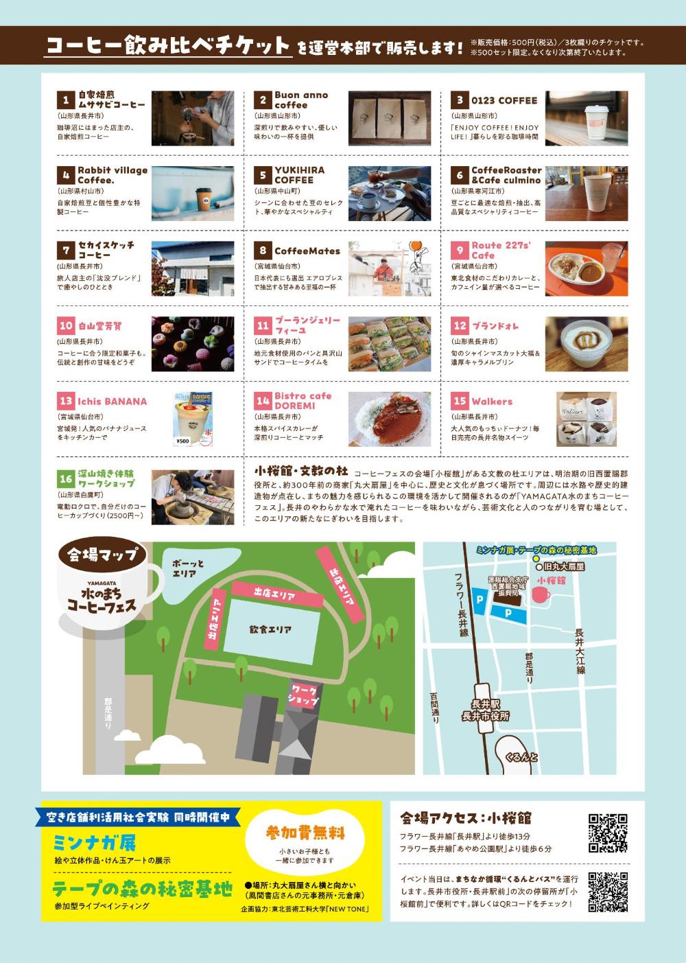 長井の水を使ったコーヒーを、いろんな店のコーヒーを飲みたい!そんな方にはお得なコーヒー飲み比べチケットを当日、運営本部で販売します。