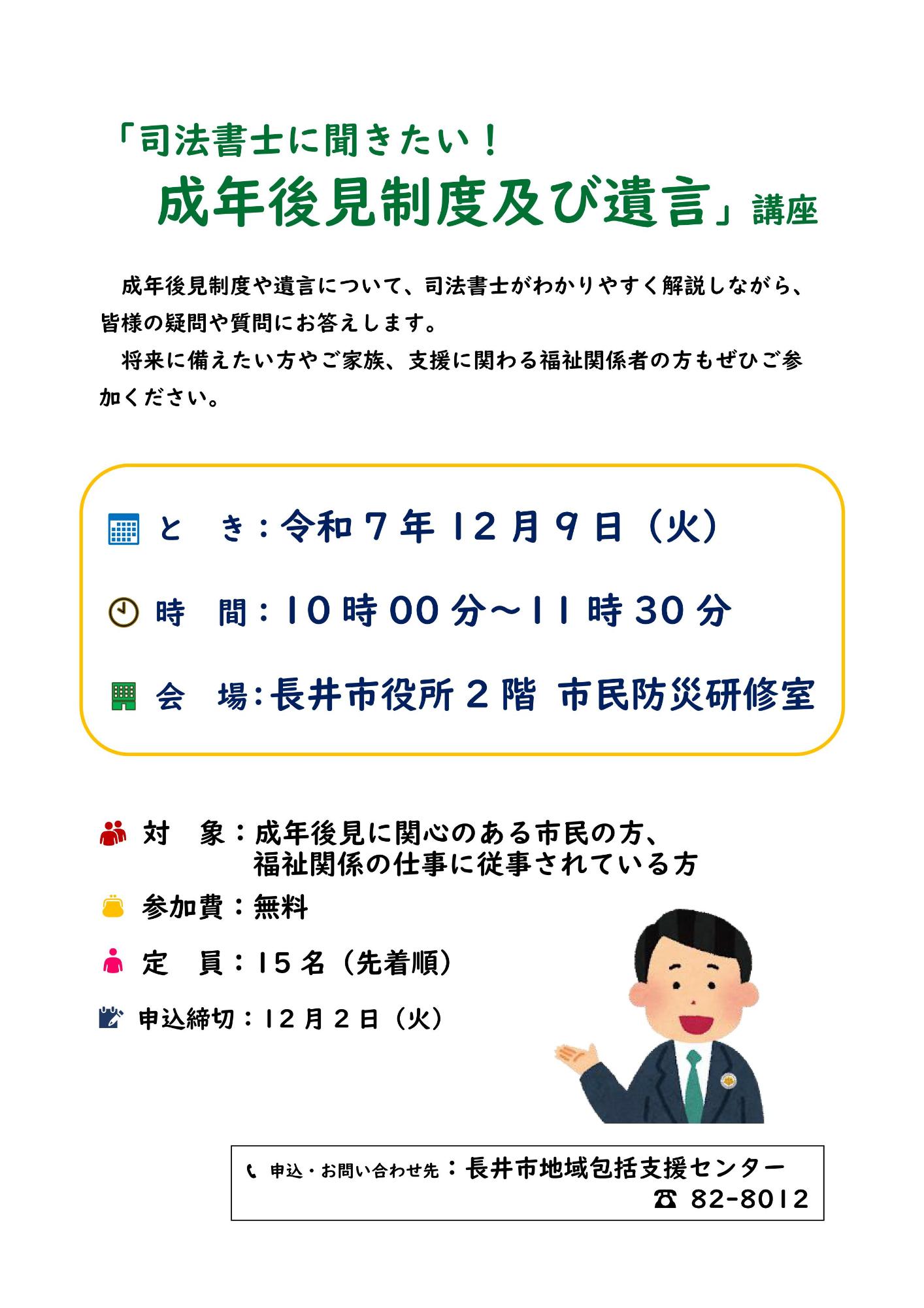 「司法書士に聞きたい! 成年後見制度及び遺言」講座