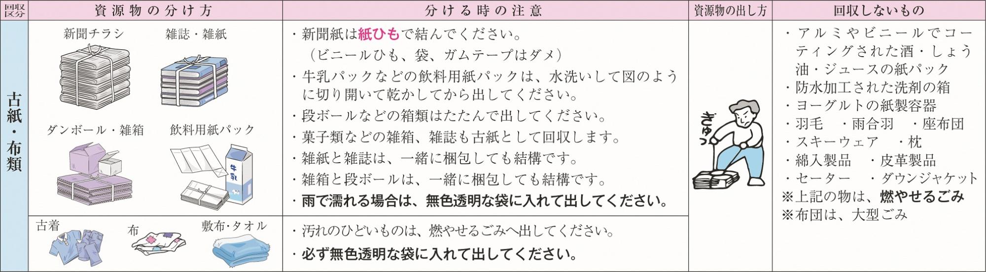 清水町地区【古紙・布類】 更新日:2026年04月01日 ページID: 4801 古紙・布類の出し方 中央地区収集区域はこちらをクリックしてください。 (PDFファイル: 73.6KB) この記事に関するお問い合わせ先 市民課 市民生活室〒993-8601山形県長井市栄町1番1号電話番号:0238-82-8007 ファックス:0238-87-3364メールでのお問い合わせはこちら