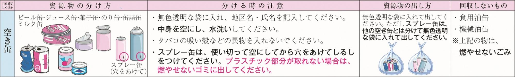清水町地区【空き缶】 更新日:2026年04月01日 ページID: 4802 空き缶の出し方 中央地区収集区域はこちらをクリックしてください。 (PDFファイル: 73.6KB) この記事に関するお問い合わせ先 市民課 市民生活室〒993-8601山形県長井市栄町1番1号電話番号:0238-82-8007 ファックス:0238-87-3364メールでのお問い合わせはこちら