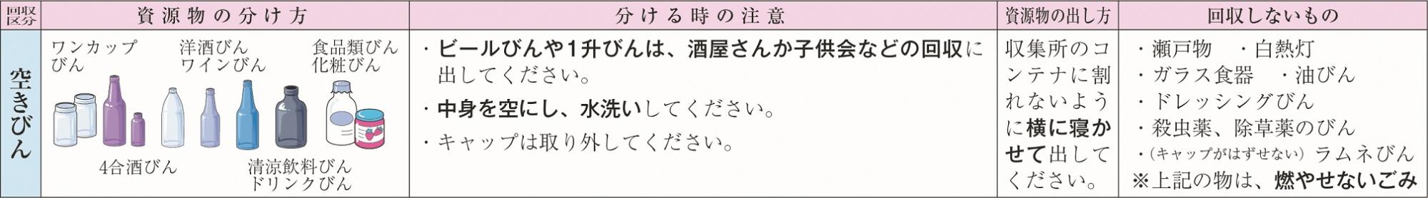 清水町地区【空き瓶】 更新日:2026年04月01日 ページID: 4803 空き瓶の出し方 中央地区収集区域はこちらをクリックしてください。 (PDFファイル: 73.6KB) この記事に関するお問い合わせ先 市民課 市民生活室〒993-8601山形県長井市栄町1番1号電話番号:0238-82-8007 ファックス:0238-87-3364メールでのお問い合わせはこちら